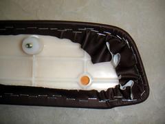 バックレストの表皮を張り替えました。写真は張替え完成後のものです。出来上がりはう~ん85点くらいでしょうか。ドライヤーとかで暖めるといいという話でしたが結局手で伸ばしてタッカーで止めました。(今回は写真が4点)